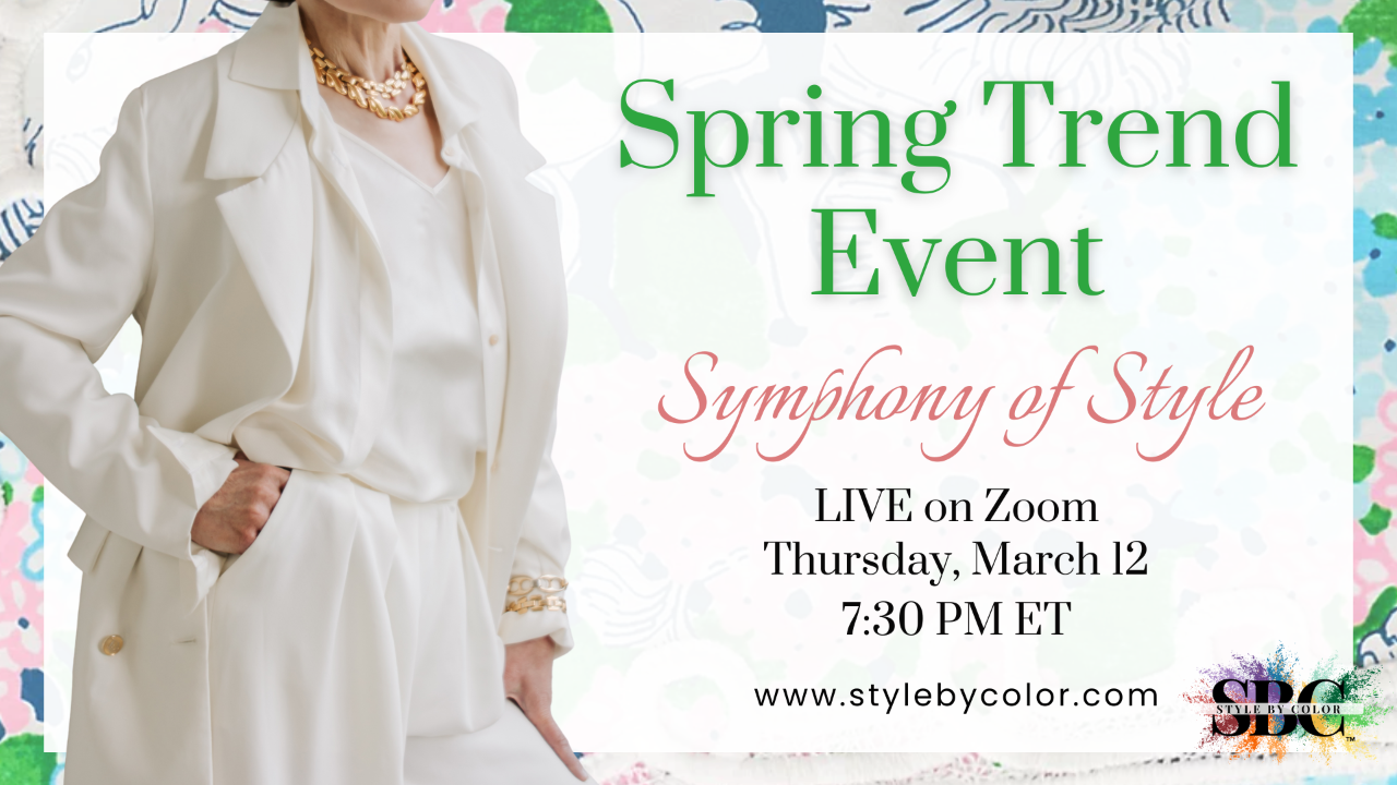 Spring is calling, and so are the top trends you need to know! Join Style by Color for an exclusive live Zoom workshop where we’ll reveal this season’s hottest styles—and exactly how to wear them with confidence.